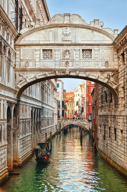 - Thăm quan cây cầu Bridge of Sighs – cầu than thở có tên gốc Ponte dei Sospiri, là một trong những cây cầu nổi tiếng nhất thành Venice, Italy. Ponte dei Sospiri được thiết kế cong mỹ miều, làm từ đá vôi trắng và có các cửa sổ hình chữ nhật bé xíu phủ lưới bên ngoài. Trong thế kỷ 17, nhiệm vụ của cây cầu này là dẫn tù nhân từ phòng thẩm vấn ở cung điện Doge tới phòng giam ở nhà tù Prigioni.